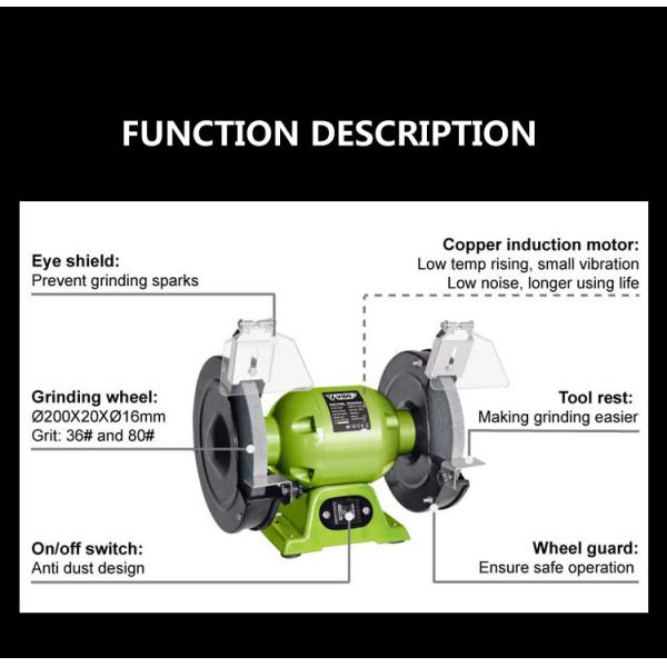 VIDO 350W bench grinder provides a strong power than that of the 150W bench grinder. If you want to test the performance of this machine, to switch on this grinder is a must. Running it 5 min or so, you could judge the quality according to its temperature. At the same time, the vibration felt and the noise listened will tell you it is good or not. The two types of wheels are installed for grinding different materials.